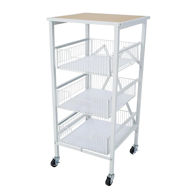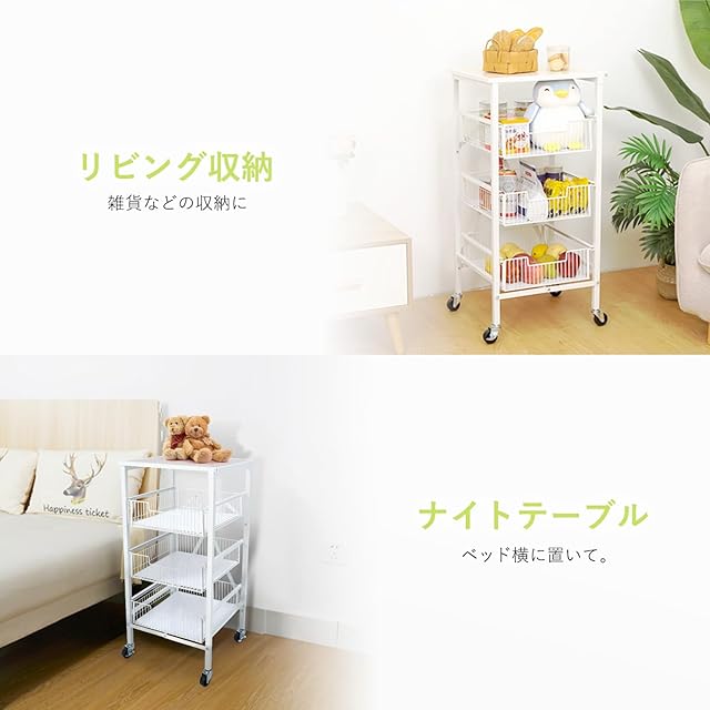 E-WIN 折りたたみ引き出しラック 4段 オープンラック スチールラック オフィス キッチン ホワイト 白 T4-WH