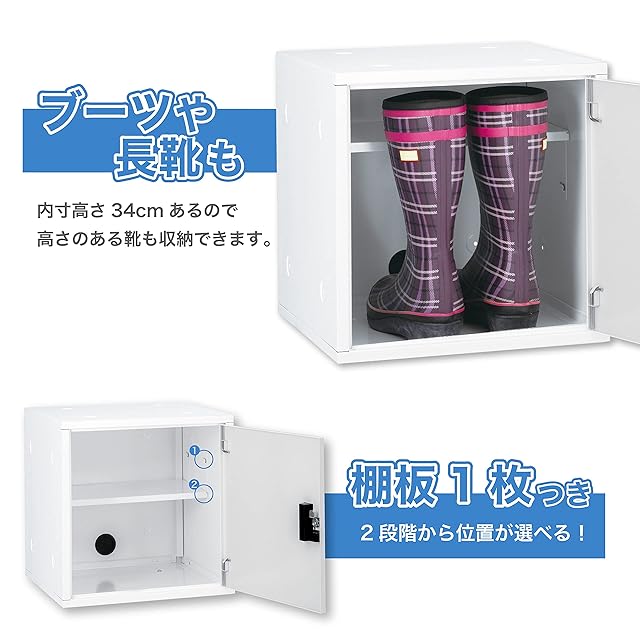 アスカ ミニロッカー 組立式ボックス シューズ対応 SB800W スタッキング可 下駄箱 ホワイト 350×350×350mm