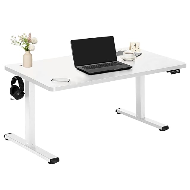 Avocahom 電動式スタンディングデスク 【幅120×奥行60 メモリー機能付き】 昇降デスク 高さ調節デスク パソコンデスク 人間工学 ゲーミングデスク セット 無段階昇降 耐荷重70kg 人間工学 おしゃれ 静音 速い 安定 組立簡単 収納フック付 (ホワイト, 幅120cm)