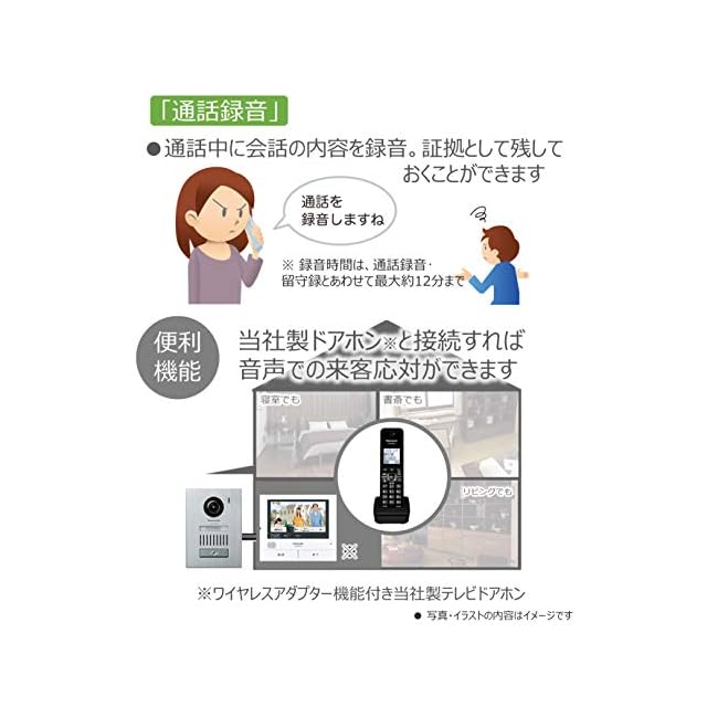 【留守番電話】応答メッセージ:デジタル録音方式、オリジナルメッセージ(約20秒、2件)、固定内蔵メッセージ(2件)、留守番録音:デジタル録音方式、合計録音時間:最大約12分