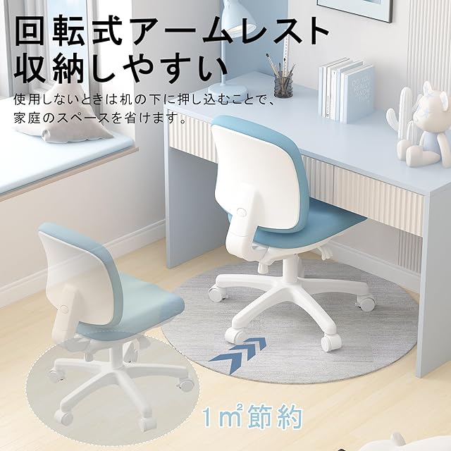 MOCHHOFU学習椅子 勉強椅子 小学生 子供 学習チェア 回転 勉強机 椅子 キャスター付き 背もたれ調節 高さ調節 かわいい 座面高さ調節可能 姿勢矯正 腰が痛くならない コンパクト 通気性強い 人間工学デザイン (Blue)