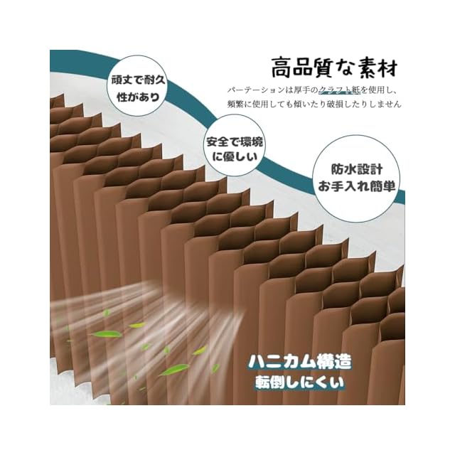 【高品質な素材】パーテーションは厚手のクラフト紙を使用し、頑丈で耐久性があり、変形しにくく、頻繁に使用しても傾いたり破損したりしません。手触りが快適で、安全で環境に優しい。さらに、防水設計により、拭き取りと清掃が簡単。