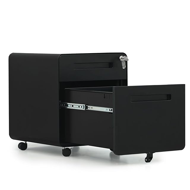 【デスクワゴン 詳細仕様】 ■ 寸法:奥行 450mm × 幅 400mm × 高さ 480mm(コンパクトで卓下収納に適応) ■ 材質:スチール製(耐久性あり) ■ カラー:ブラック(オフィス空間にシンプルに馴染む) ■ 付属品: 鍵 ×2 本(全引き出し一括ロック可能) ペントレー ×1 枚(文具整理用) 仕切り板 ×1 枚(収納空間の柔軟分割対応) ■ 特徴:丸角加工済み(安全性を高めたデザインで衝撃軽減)