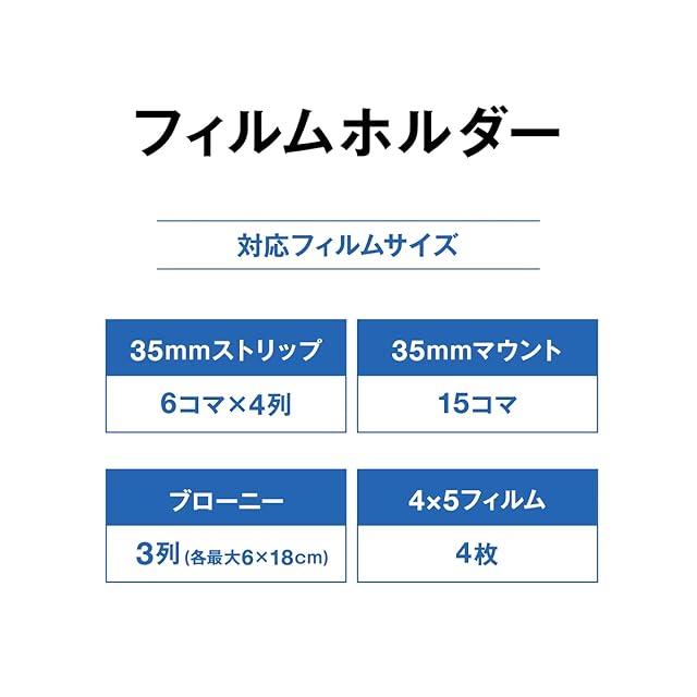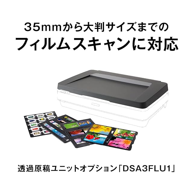 別売のオプションにて、35mmから大判サイズまでのフィルムスキャンに対応