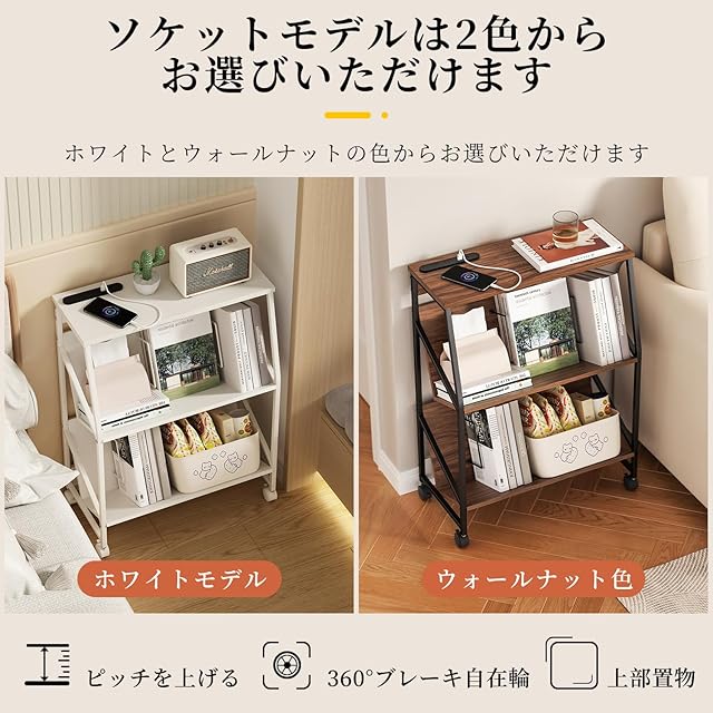 ファイルラック ファイ【コンセント付き書類カート】ホコリを防ぐ上棚付き。強力な耐荷重性があり、各棚は10kgに耐えることができ、重い物を運ぶのに適しています。上部には電源ソケットがあり、携帯電話やノートパソコンの充電に非常に便利です。上部には小型プリンターやFAX、装飾品、電気スタンドなどを置くことができます。ルワゴン 3段