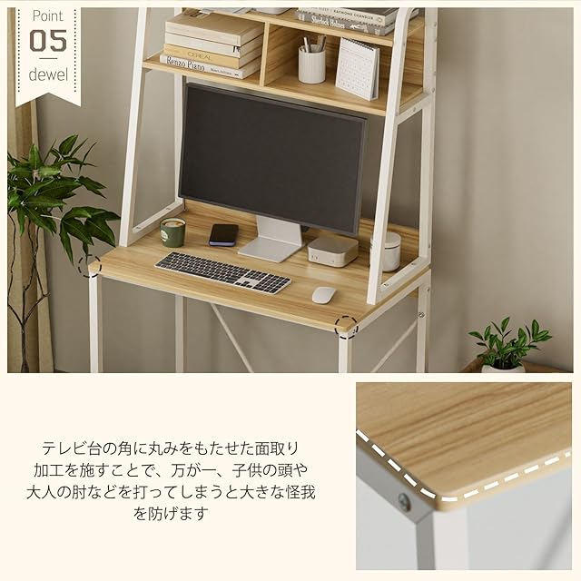 【細かいところまで配慮】テレビ台の角に丸みをもたせた面取り加工を施すことで、万が一、子供の頭や大人の肘などを打ってしまうと大きな怪我になりかねません。また、パッケージに付属の固定アクセサリーを製品に取り付ければ、地震災害による被害を回避できます。
