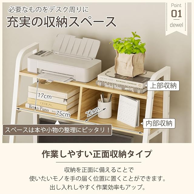 【80cm幅に憧れの壁面収納】スペースの空きがちな天板の上部を有効利用するように、勉強机の上部には収納棚を二段階備えます。すぐ手の届く場所へ、書類や資料もまとめて置けるラックー体型が便利!作業効率もグッとはかどることは間違いなし!天板は幅80cm収まる省スペースデザインでパソコン操作に十分な広さ、ゆったり快適に使えます。