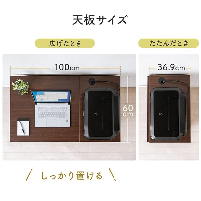 横幅約100cmでノートパソコンとプリンタなどを並べて置いても余裕のサイズです。