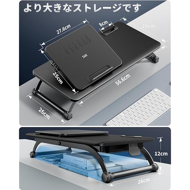 SAIJI スタンディングデスク 卓上 ノートパソコン昇降式テーブル 軽量 6段階折畳みテーブル 机上 天板サイズ56.8×28cm 昇降範囲12~42cm 便利な収納 組立不要 角度調節可能なラップトップスタンド付き