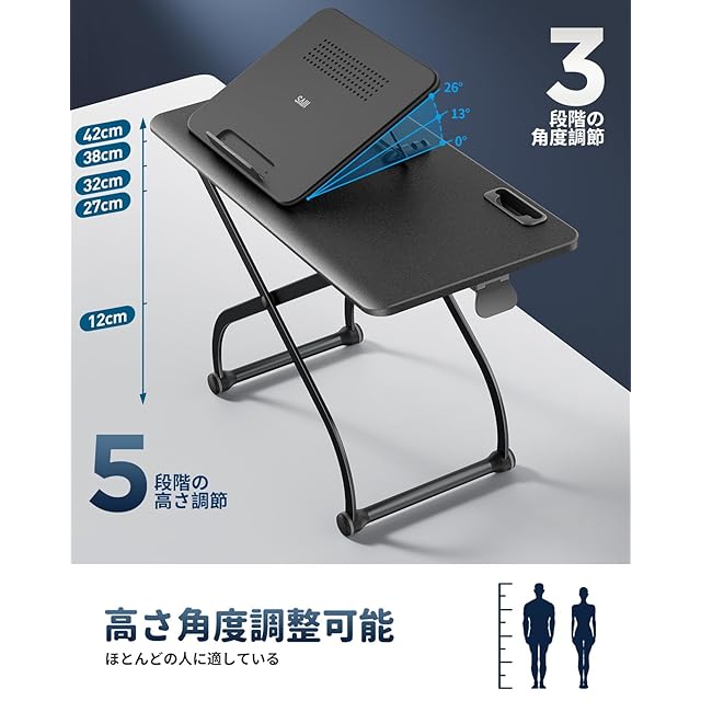 [高さ調節可能、広々スペース】昇降式テーブルの表面サイズは56.6cm*28cm、ノートパソコンとマウスを置くのに十分なスペースがあります。 高さは42cmで上げることができ、12cmで下げることができます。
