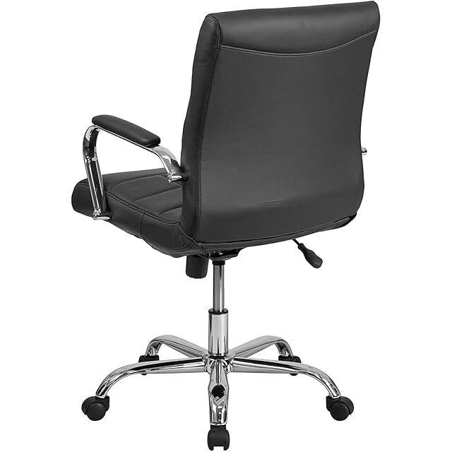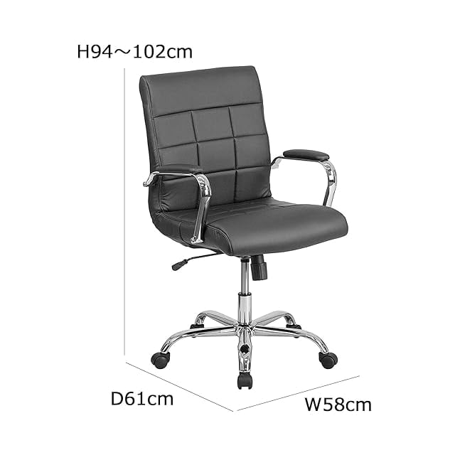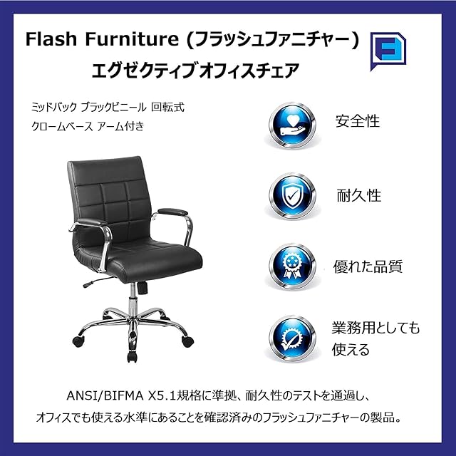フラッシュファニチャー(Flash Furniture) エグゼクティブオフィスチェア ブラック ミッドバック 回転式 ビニール クロームベース アーム付き 61D×58.4W×101.6H cm 座高46.99~56.52cm 【日本正規輸入品】 GO-2240-BK-GG