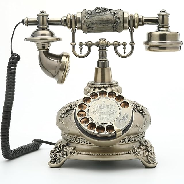EnergyPower 高級アンティーク調 ダイヤル式電話器 アナログ式電話機 電源不要 機械式&電子式2種類のベル搭載 レトロ アナログ電話 インテリア オールドヨーロピアンスタイル 固定電話 黒電話 ビンテージ ヴィンテージ 回転式 カフェ/ホテル プッシュ(トーン/DTMF)回線対応 (ブロンズ [ダイヤル式])