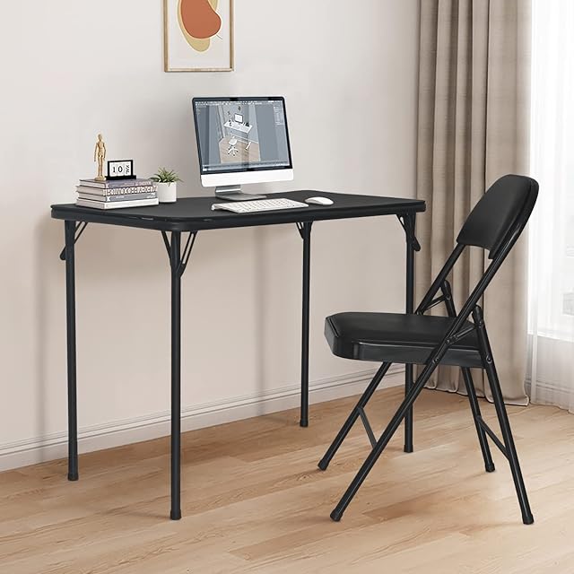 BOOSDEN パイプ椅子 折りたたみテーブル セット椅子 おりたたみ 室内 折りたたみ椅子 折り畳みテーブル デスク チェア 折り畳み椅子 おりたたみテーブル ダイニングテーブル 金属製 省スペース シンプル ブラック
