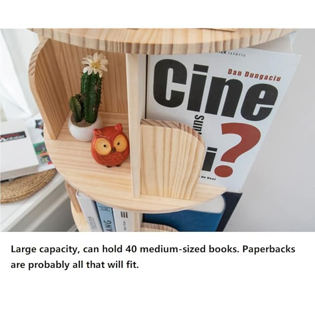 回転式本棚 360 ディスプレイ 4段 フロアスタンディング 収納ラック 子供&大人用 無垢材 本棚オーガナイザー (無塗装の天然木-2段)