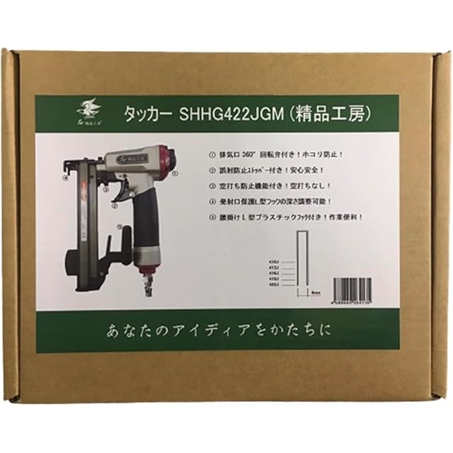 商品名:精品工房 エアタッカー SHHG422JGM 岩綿 J線 4mm タッカー 常圧 吸音板 キュウオン 常圧 空打ち防止機能 ステープル 正峰 (GOOD TOOLSアクセサリーバッグ付)