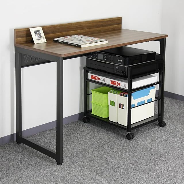 PJC7001-BK プリンター台 3段・プリンターワゴン プリンターラック キャスター付き【デスクの下に収納】