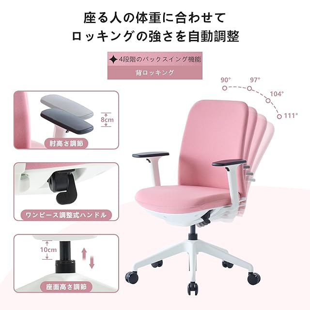 YOUTASTE オフィスチェア デスクチェア 人体工学設計 パソコンチェア 事務椅子 ワーク 疲れない pcチェア メッシュ ランバーサポート調節可能 360°回転 昇降式 静音キャスター モバイル ハイバック ビジネス 腰痛くならない 長時間作業向け おしゃれデザイン ピンク 耐荷重150kg