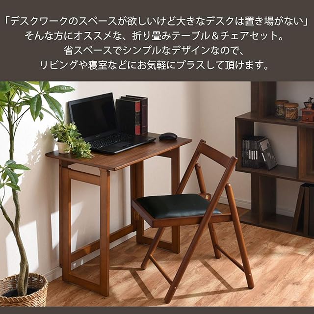 ぼん家具 折りたたみ デスク+チェア 2点セット 天然木 机 テーブル 椅子 おしゃれ デスクセット ブラウン