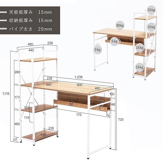 【利便性の高い収納棚】ラックの下から2番目の収納棚は3段階位置調整可能で、需要に合わせ、高さを変更することができます。デスクPC本体を収納することもできます。