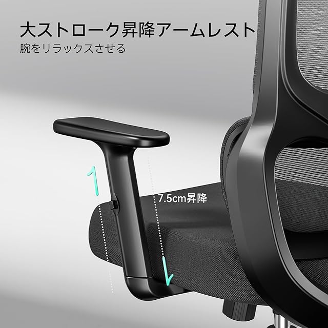 Hbada P2 Airオフィスチェア デスクチェア 椅子 テレワーク 疲れない ワークチェア パソコンチェア 3Dランバーサポート2Dヘッドレスト 3Dアームレスト 人間工学 オフィスチェア ハイバック メッシュ 三段階調節 約135度リクライニング イス 社長椅子 pcチェア 静音PUキャスター 学習用チェア OAチェア (ブラック)