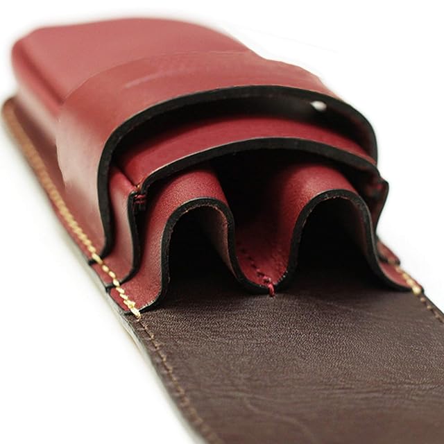 [札幌革職人館] 二本差 万年筆ケース ペンケース 日本製 牛革 オイルドレザー ボルドー