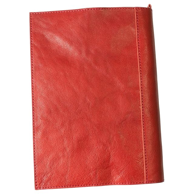 C&L TRASCO ≪Shrinkシリーズ≫ ブックカバー 本革 ベジタブル・タンニン・シュリンクレザー (レッド, 四六判ハードカバー)