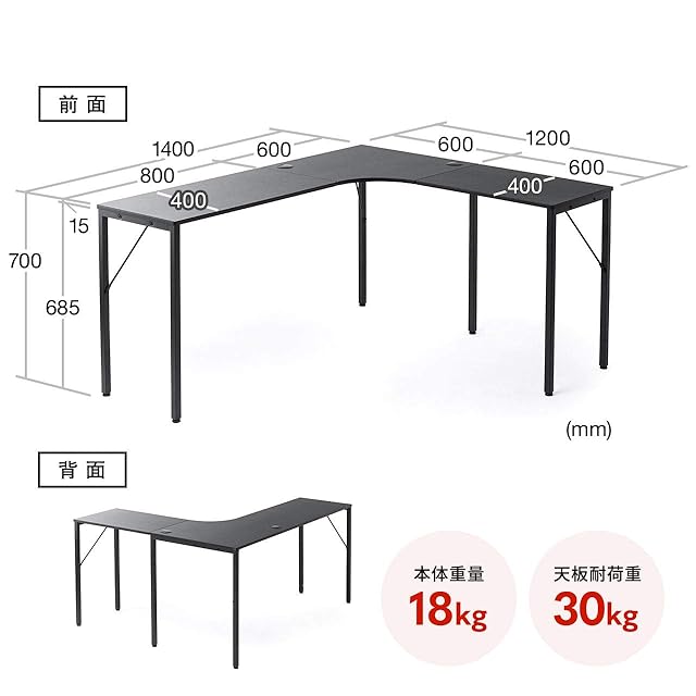 コーナー空間を有効に使えるL字デスクです。奥行40cmのスリムな奥行で圧迫感なく自分だけの集中スペースを簡単に作ることができます。