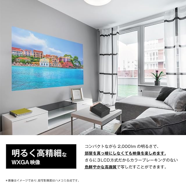 EPSON dreamio ホームプロジェクター(2500000:1 2000lm) WXGA対応 メディアストリーミング端末あり EF-100BATV