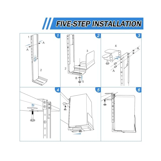 調節可能なクランプマウント デスクに PCタワー用 - ドリル不要、高さ13.25インチ~21.6インチの間で調節可能、幅5.5インチ~9.8インチの間で調節可能、高耐久デスク下コンピューターマウント、デスク用コンピュータマウント