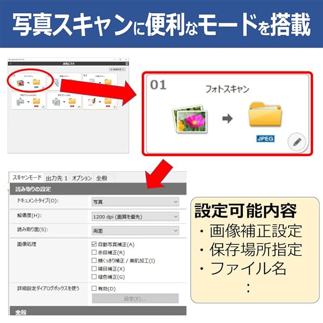 対応原稿:写真(L判、2L判、KG、インスタント写真、六切)、普通紙、名刺、カード対応