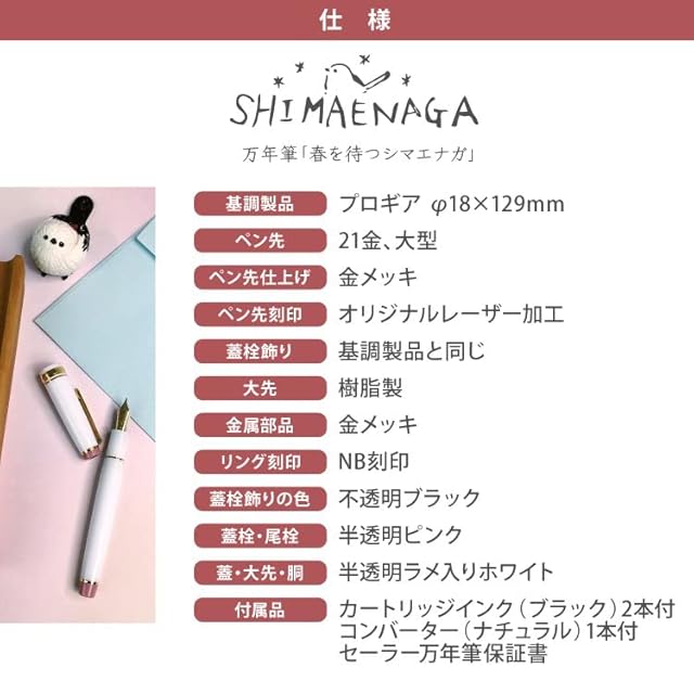 セーラー万年筆 万年筆 ホームショッピングオリジナル 春を待つシマエナガ ホワイト ピンク 極細