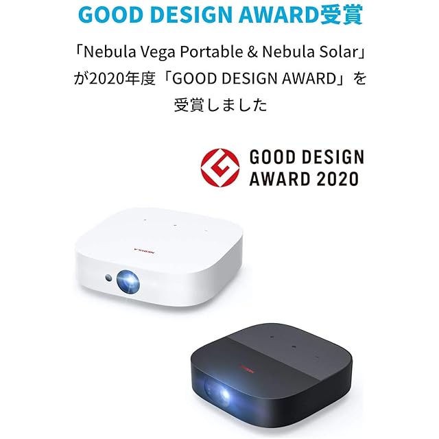 パッケージ内容:Nebula Vega Portable、リモコン (単4形電池×2付属)、クイックスタートガイド、Power Delivery対応USB充電器、USB-C&USB-Cケーブル、カスタマーサポート 技適マーク認証済み商品(周波数帯 Bluetooth:2.4GHz、Wi-fi:2.4GHz/5GHz)※輝度 (光束) はANSI IT7.228-1997規格に基づいて測定されており、記載されている数値は弊社テスト環境での計測平均値となります。輝度は使用状況によって異なることがあり、使用時間の経過にともなって低下します。