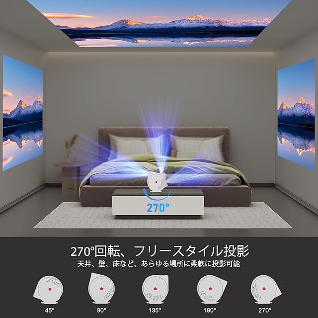 商品名:【270°回転・USB-C・自動台形補正】EGOBAS 4K対応プロジェクター天井投影 高輝度400ANSI ホームプロジェクター Android TV搭載 1080P対応 モバイルプロジェクター 家庭用 小型 5G WIFI6 双方向Bluetooth ズーム機能 短焦点 スマホ/タブレット/パソコン/TV Stick/Switchなど対応