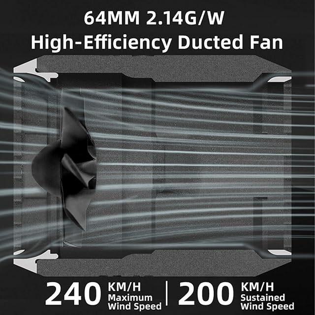 強力な性能:送風ファンは64mmダクト高速ブラシレスモーターを採用し、優れた除塵効果をします。科学的なダクト設計、推力1400g、風速240km/h、効率的で実用的。