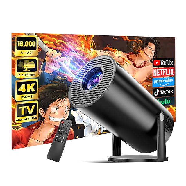 PliPla プロジェクター 家庭用【270°回転・18000LM・4K対応・Android TV搭載 最新登場! PSE認証済み】 プロジェクター 小型 高輝度 リアル1080P 天井投影 Wi-Fi6瞬間接続 Bluetooth5.4 HiFiスピーカー内蔵 自動台形補正 短距離投影 大画面 スタンド一体型 軽量 スマホ/パソコン/PS機など接続可 日本語取扱説明書 (ブラック)