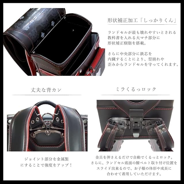 強度とデザインにこだわった男の子向けデザインのランドセル。側面の竜の羽をイメージした反射板が交通時の安全面にも配慮されております。