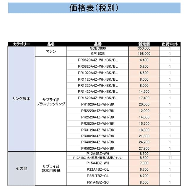 プラスチックリングバインドサプライ品のサイズ紹介 サイズ:A4 20穴 内径6mm~50mm