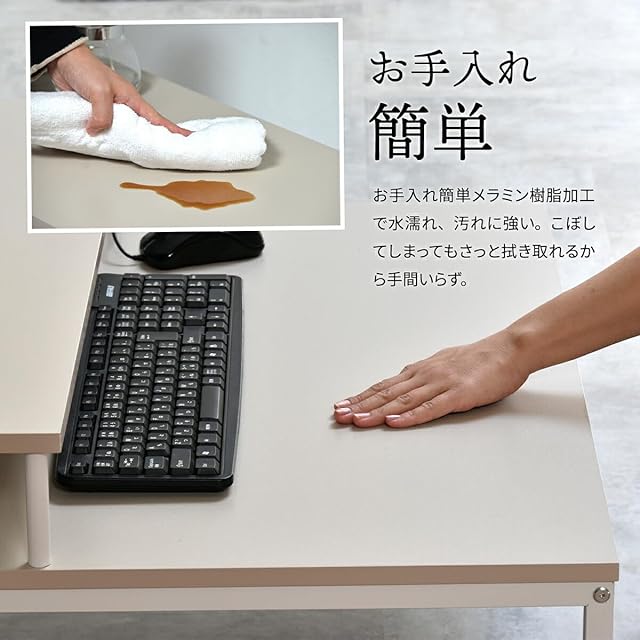 防水性・耐久性に優れたメラミン天板とスチール脚でリビングや和室にも馴染むデザイン。コード類も配線しやすい背板フリー構造。