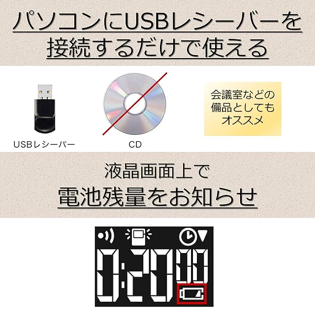 「連続使用約38時間」で電池交換の手間も省けて、長時間のプレゼンにも安心