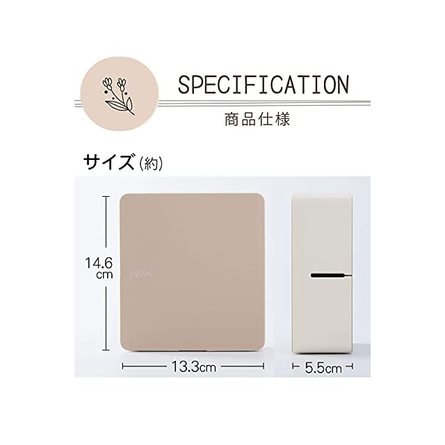 【テプラPRO MARK】外形寸法:約55(W)×133(D)×146(H)mm、質量:約470g(電池、テープ除く)、電源:単3形アルカリ乾電池 または 単3形充電式ニッケル水素電池 ×6本、ACアダプタ(AC1116J)※すべて別売り、インターフェイス:Bluetooth(R)接続、プリンタ:サーマルヘッド(360dpi・256dot)、熱転写PRO印刷方式カッター:オートカッター、対応テープ:PROテープカートリッジ4、6、9、12、18、24mm※転写テープ、カットラベル、点字テープカートリッジ除く、 最大印刷可能幅:18.1mm(24mm幅テープ使用時)、同梱品:取扱説明書(書付)