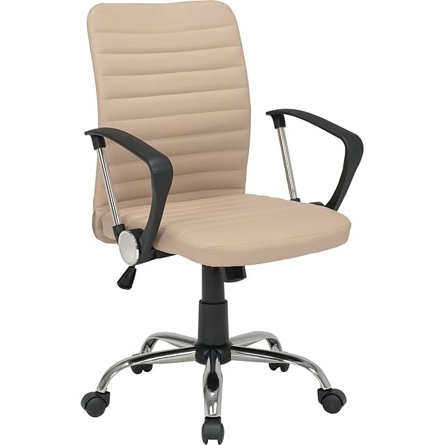 商品名:萩原 オフィスチェア デスクチェア デザインチェア 椅子 無段階高さ調節 PVCシート ロッキング機能 キャスター ひじ掛け 付き 360度回転 幅58×奥行56×高さ93~103 ベージュ LHC-4470BE