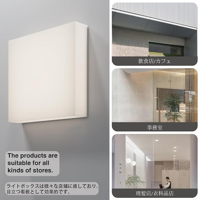 Aucler 電飾看板 屋内/屋外用 防水 電源内蔵 飲食店・店舗用 電光掲示板 壁掛け看板 文字変更可能 W30cm×D30cm×H8cm(看板本体)