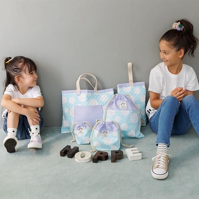 【仕様】 レッスンバッグ・ポケット内側ネームタグ付き、Dカン付き、肩掛けOK、マチなし/ シューズバッグSサイズ・内側ネームタグ付き、Dカン付き/巾着Lサイズ:巾着Mサイズ:巾着Sサイズ・内側ネームタグ付き