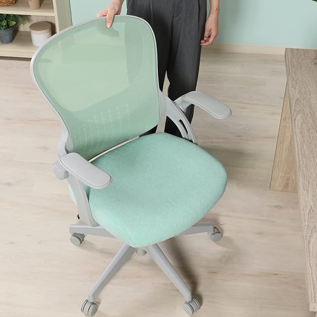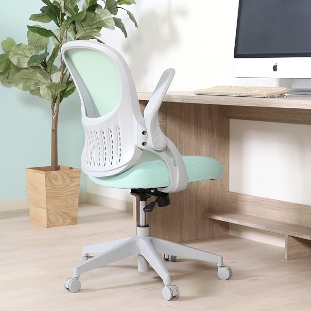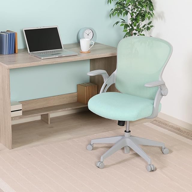 不二貿易 オフィスチェア デスクチェア 幅62.5×奥行60×高さ87~94.5㎝ グリーン ロッキング機能 跳ね上げ式アーム 組立商品 パベル 37910