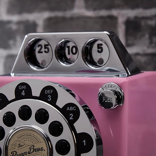 Ryan Bros. American Retro 1950年代 公衆電話 コインバンク 壁掛け コード付き携帯電話 (ピンク)