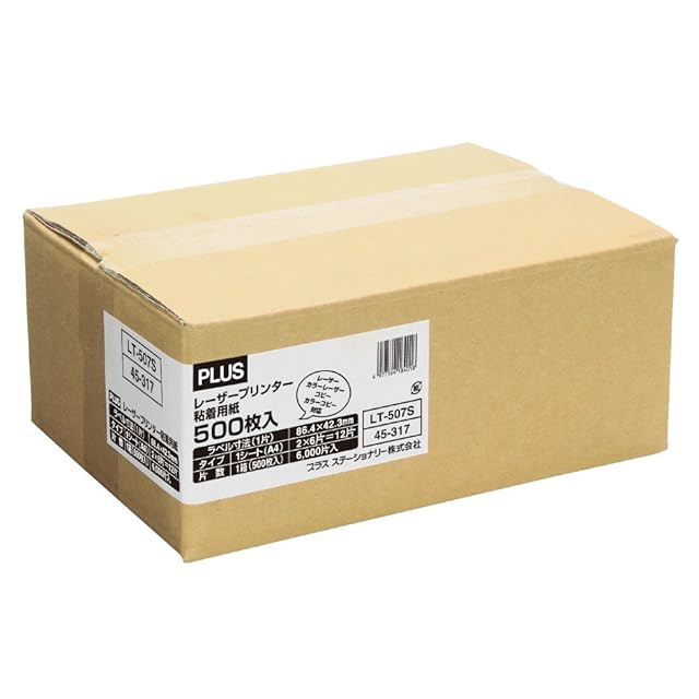 プラス ラベル レーザーラベル A4 12面 500枚 LT-507S 45-317