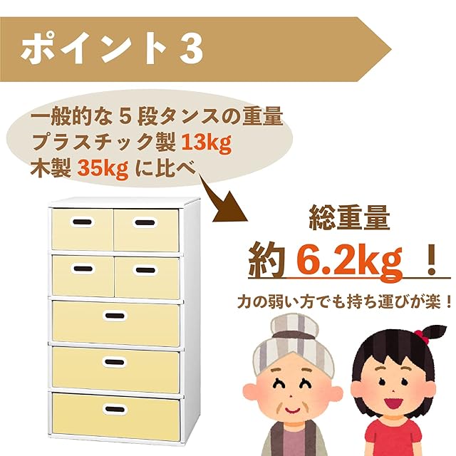 エコなダンボール製 工具無しで組立簡単 一人暮らし 転居 シニア生活 エコなダンボール製オリジナルチェストBタイプ5段 (5段・白)