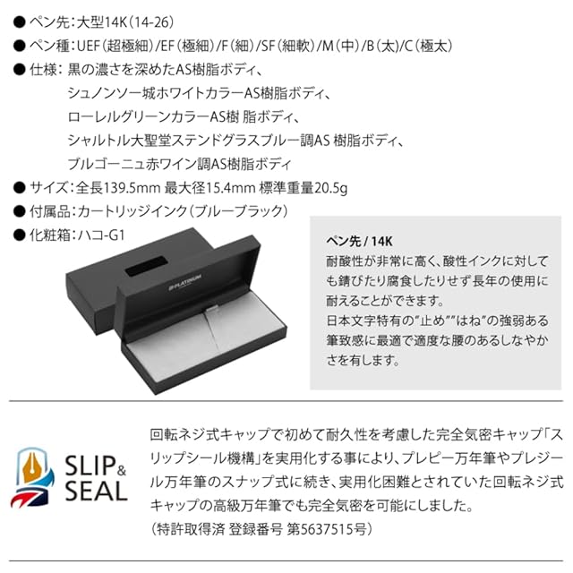 プラチナ万年筆 万年筆 #3776 センチュリー PNB-15000#2 シュノンソーホワイト 中字 M インクカートリッジ付 4点セット