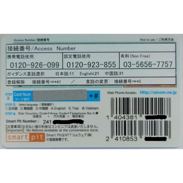 格安国際カードです。固定電話も、携帯も使用できます。 キャリヤ(電話会社各社のダイレクトコール)の約半額~で使用できます。