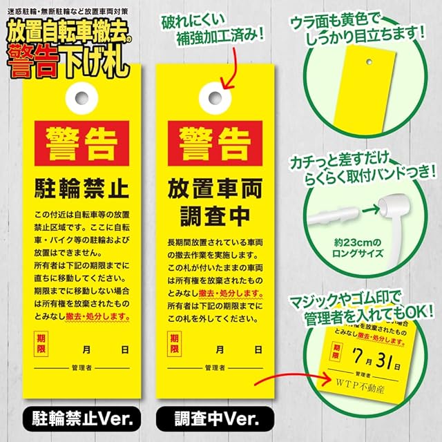 撤去期限をマジック等で記入して明確な警告が可能